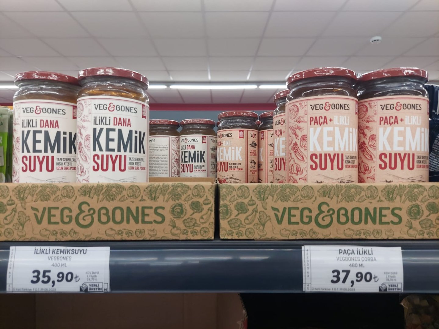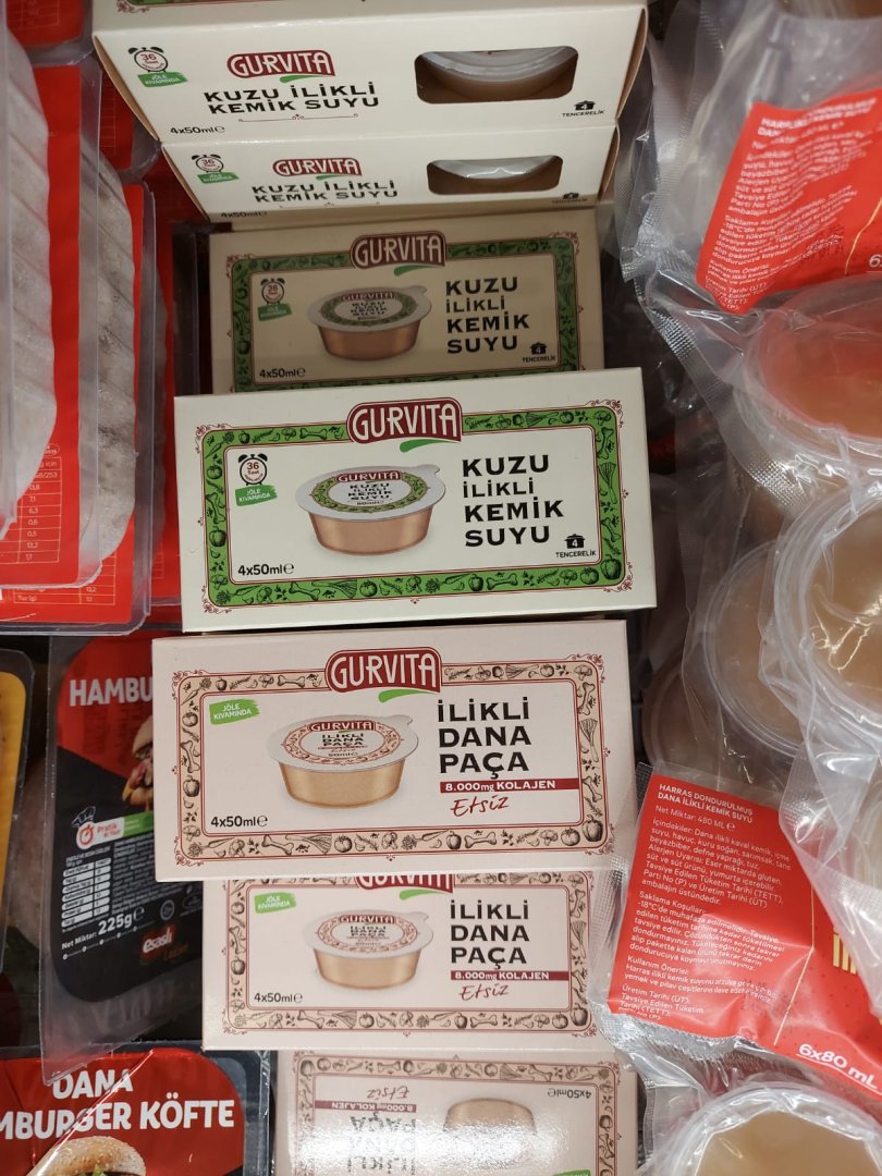 Hem doktor, hem de 2 ay önce annesi kalçasını kırmış bir hasta yakını olarak biz de doğal yöntemler olarak her fırsatta kemik suyu, bol protein, kelle-paça / ayak-paça çorbası tükettik. Ek olarak File markette ilikli dana paça suyu, kuzu ilikli kemik suyu, dana ilikli kemik suyu gibi ürünler var. (Görselleri ekliyorum, haziran başında çekmiştim. Fiyatlar değişmiş olabilir.) Bunları pilava, şehriye çorbasına vs. her seferinde ekleyerek hasta uyumunu da artırmaya çalıştık. Çok şükür, kemik de hızlı toparlıyor.