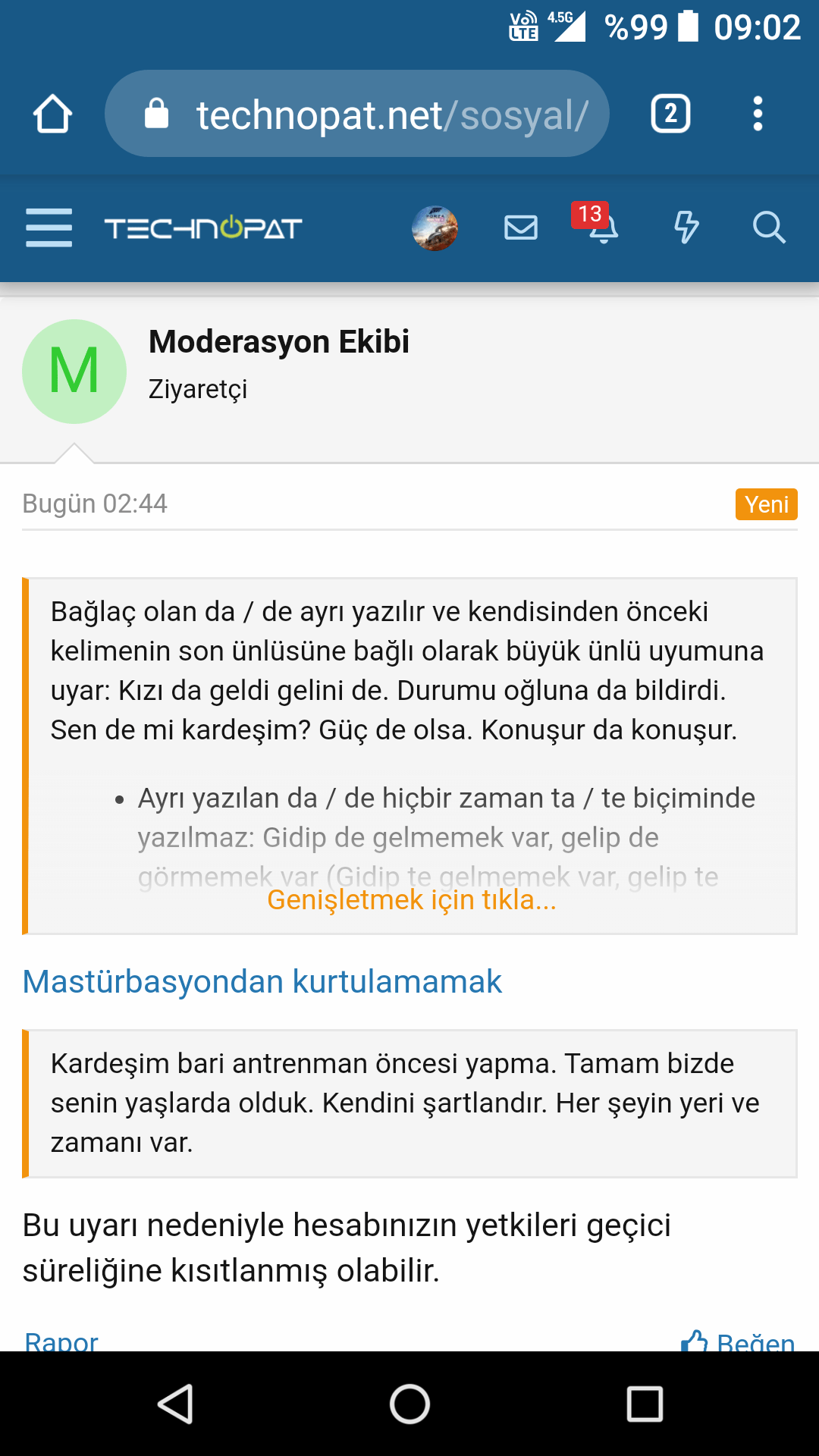 Bu konuyu aldığım bir cezanın yanlış olduğunu düşündüğüm için açtım. Aldığım ceza bağlaç hatası. Fakat ben burada hata yapmadım. Durum bildiren ek bitişik olarak yazılır. Yanlışlık varsa cezamın kaldırılmasını talep ediyorum. Değerli moderatör arkadaşlarım ve yönetim ekibine saygılarımı sunarım.