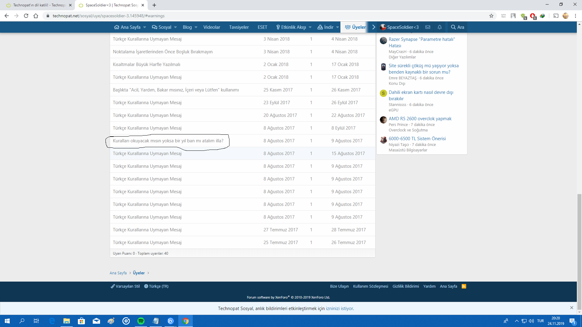 Hocam yine yazım yanlışı yapmışsınız.Yazım yanlışı olan mesajı alıntılayınca ilk cezamı yedim ve şaşırdım böyle bir ceza olduğuna. Artık kuralı öğrendim ve yazım yanlışı varsa düzeltip de alıntılyorum.