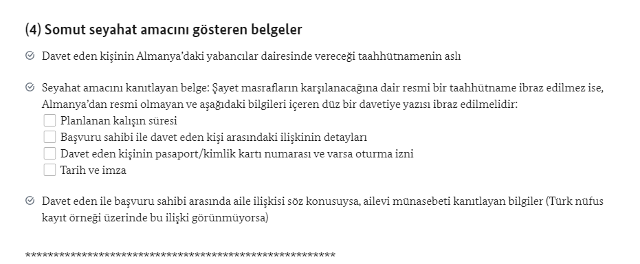 Merhaba. Almanya vize başvuru için davetiye gönderecek oradaki tanıdıklarımız ancak 12 günlük bir süre var. Yetişmeyebilir diye düşündük. Bu notta yer alan Almanya'dan resmi olmayan ve aşağıdaki bilgileri içeren düz bir davetiye yazısı kısmının detayını bilen var mı? Yazacakları dilekçe gibi bir yazıyı çıktı alıp başvuru dosyasına eklesek oluyor mu yani?
