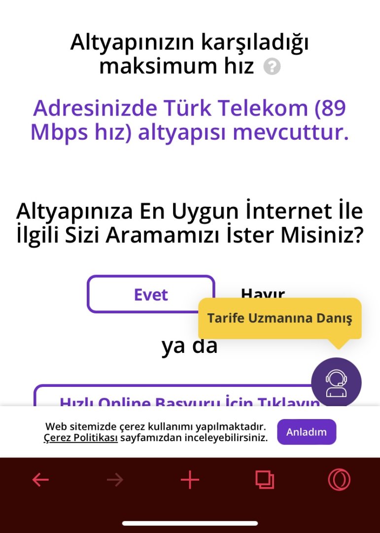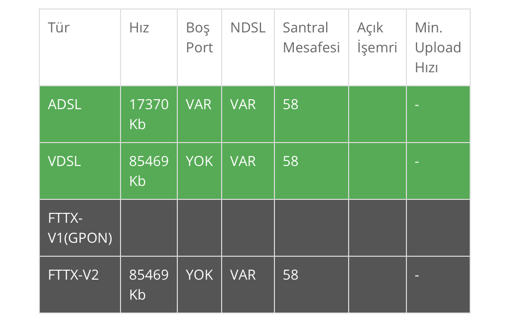 Şimdi alta birkaç siteden yaptığım analizleri koyacağım. Not: Türk Telekom kendi sitesinde bizim adresi yazdığımda harita üzerinden biraz üstteki sokak gözüküyor.