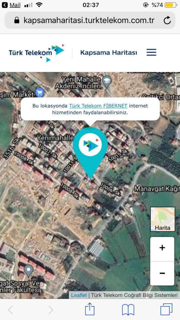 karşıma çıkan tablo bu vaziyetteydi, binada da fiber vardı. Üstelik zaten beyaz fiber kutusu da hemen binamın bulunduğu hizada ve 30 m uzakta. Hemen bulunduğum ilin Türk Telekom bayisine gidip detaylı altyapı sorgulaması yaptırdım ve mahallenin adını söylerken kadın direkt o mahallede fiber hat çalışmaları devam ediyor dedi. Sorgulama sonrası altyapı uygunluğunun olduğunu, kapasite falan falan bunlar uygun olduğunu ama aktif edilmediğini falan söyleyip Türk Telekom ofisine gitmemi ve orada başvuru yapmam gerektiği söyledi. Sanırım bu başvuru da 24 haftaya kadar sonuçlanıyormuş falan falan.