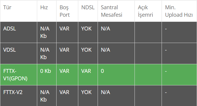 Siz şimdi TT'yi arasanız müşteri temsilcisi 1000'e kadar hız verilebileceğini söyleyecek ama verilemeyecek. Çünkü onlar da altyapı sorguladığında bizim gördüğümüzden farklı bir şey görmüyorlar. Dolayısıyla mevcut altyapınızda en fazla 100 Mbps alabileceğiniz aklınızda bulunsun.
