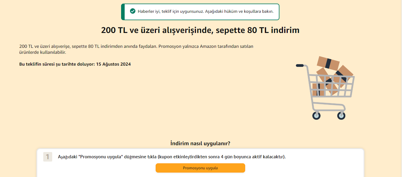 Diğer Amazon 200 TL üzeri 80 TL indirim