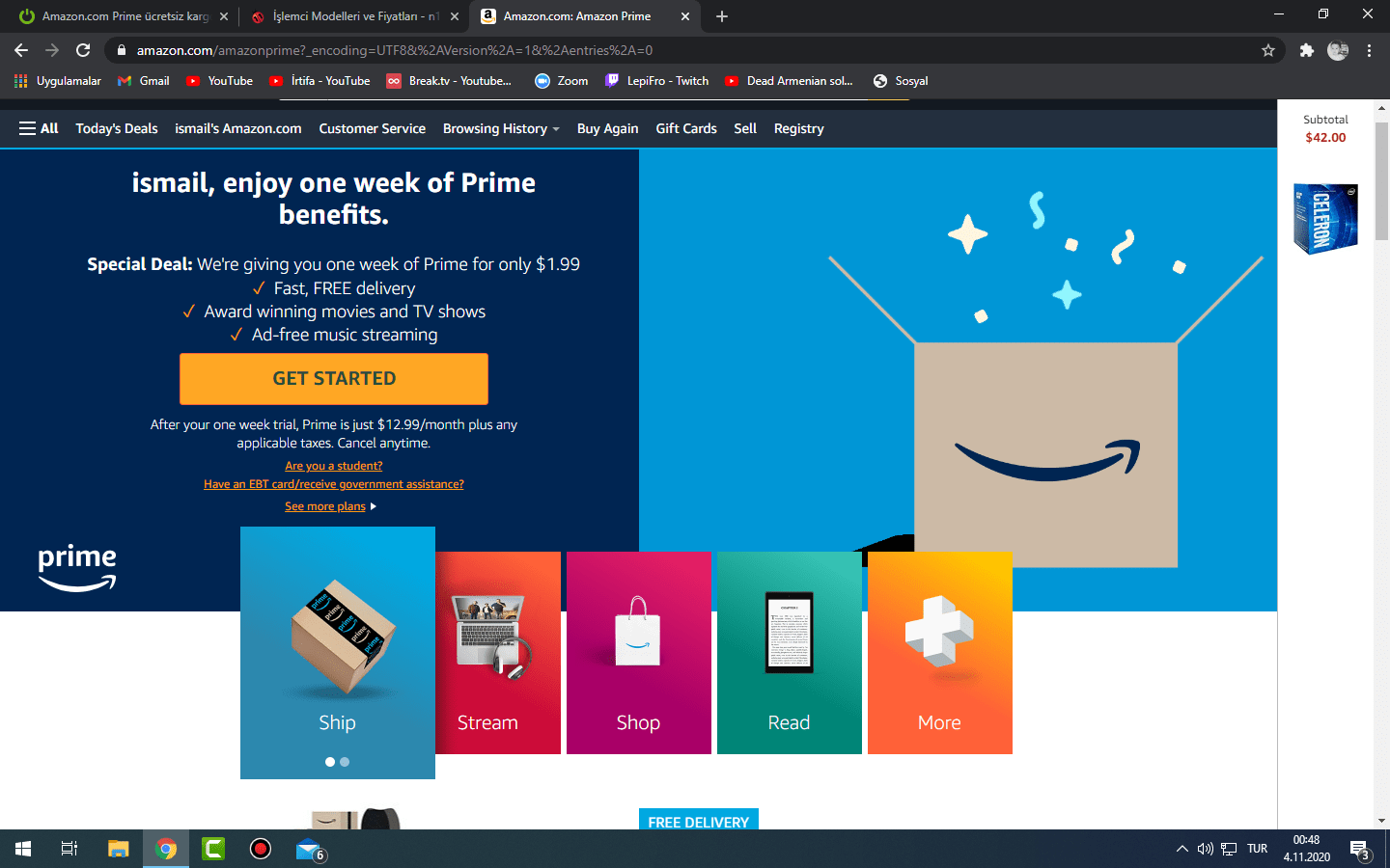 Tek kendim için sormuyorum bu soruyu. Amazon Prime sistemine ücretsiz üye oldum. Ancak ürünün kargo ücreti hala gözüküyor. Sitede kargonun ücretsiz olacağı yazıyordu. Neden olmadı?