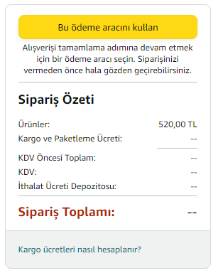 Ödeme aracınızı ve adresinizi seçtikten sonra çıkacaktır.bende vergisi felan gözükmüyor neden böyle ?Eki Görüntüle 1730437