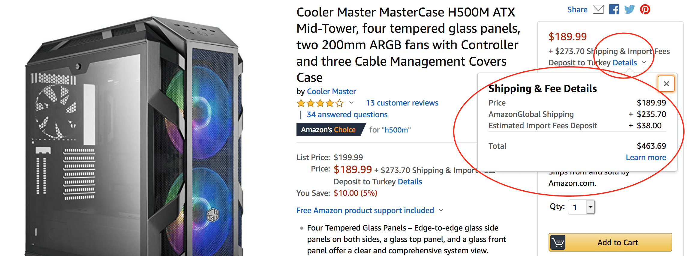 çok teşekkür ederim yardımların için galiba o paraya o kasa değmez gibi@Görkem Efe ÇATLI verdiğin linkte sağ tarafta aynı "details" kısmına tıkladığında vergi ve kargo ücretin direk çıkıyor aşağıdaki görselde tıklanmış halini ve ilgili alanı kırmızı ile gösterdim bakabilirsin. Total yazan kısım senin son ödeyeceğin ücrettir.