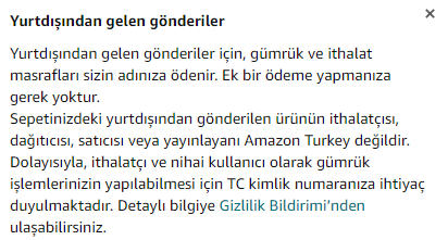 Amazon adresinden aldığınız ürünlerin vergisini satın alım esnasında Amazon'a ödüyorsunuz. Kimlik numaranızı Amazon'a girdiğinizde ve 18 yaşından büyükseniz sorunsuz şekilde(*) teslimat elinize ulaşıyor. Amazon gümrük işlemlerini sizin adınıza gerçekleştiriyor.