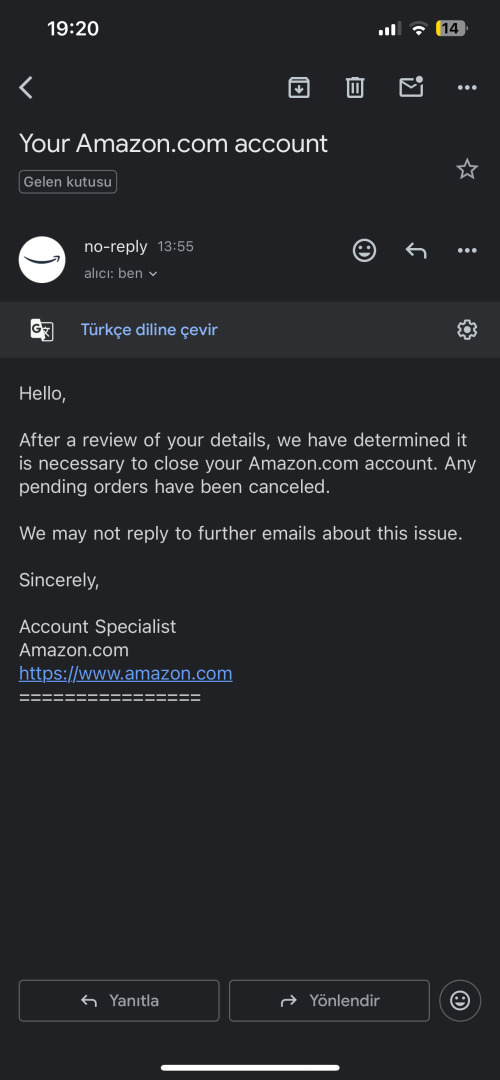 Amazon hiçbir sebep yokken hesabımı kapattı ve 200$ değerinde ürün sipariş ettim, parasını ödedim, ödemem şimdi bana iade edilecek mi? Burada iptal edildiği yazıyor. (Azerbaycanlıyım, gümrükle alakalı bir durum değil hesabın kapanması)