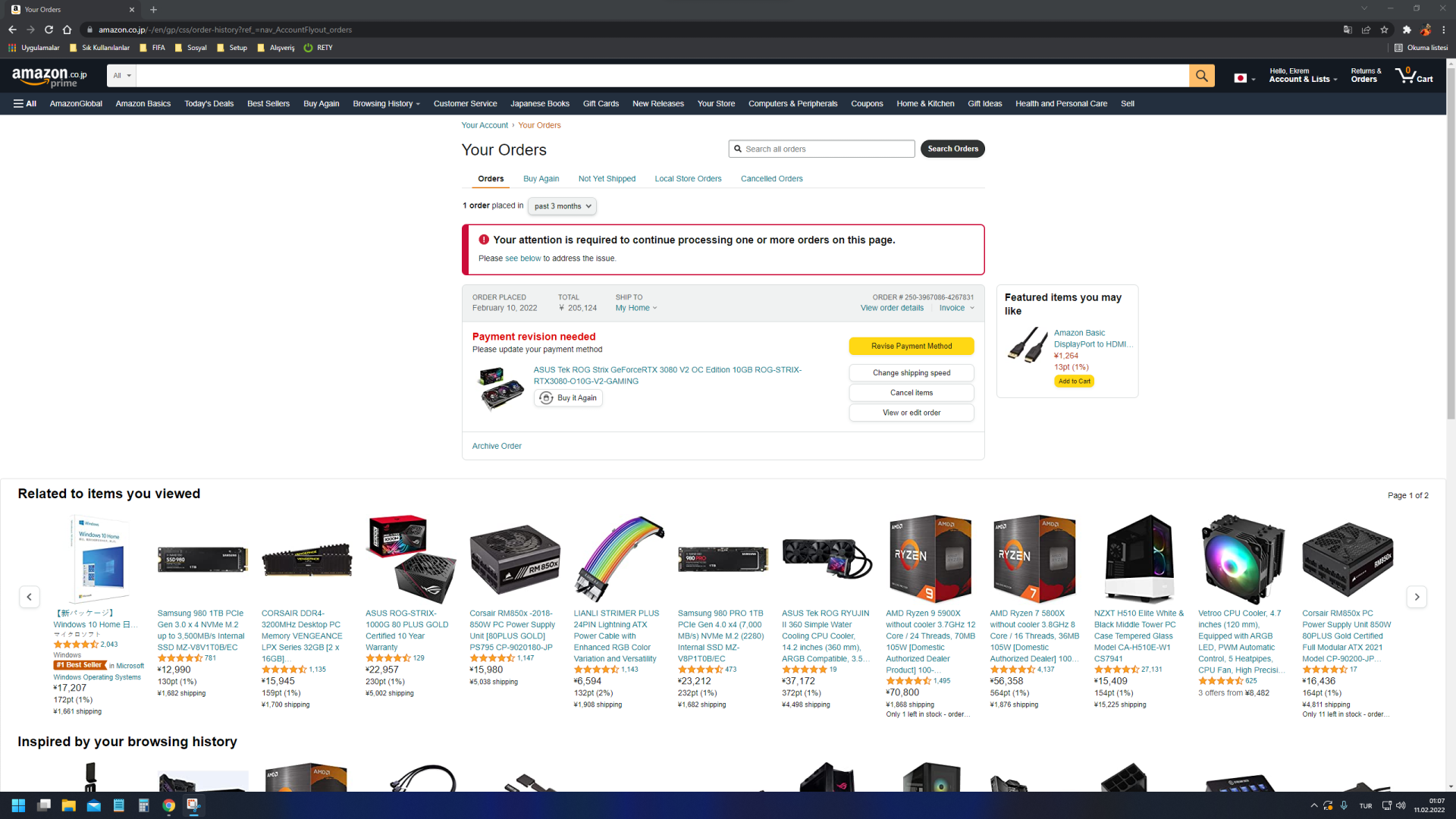 Dün gece siparişi verdiğimde deneme amaçlı kartımdan 1 yen çekim yaptı ve bir sorun yoktu. Bugün öğle vakti ürünün ücretini tahsil etmek istediğinde ise QNB Finansbank banka kartımın 20.000 TL harcama limitine takıldığı için işlem başarısız olmuş. Böyle bir limit olduğu tamamen aklımdan çıkmış. Bu durumdan haberim yoktu. Mail geldiğinde haberim oldu. Bankamla görüşme yaptım ve limitimi 30.000 TL'ye yükseltmeleri için onlara rica ettim. Limitim yükseldikten sonra tekrar ödeme yapmayı denedim ama yine hata almaya devam ediyorum. Şu an Amazon müşteri hizmetleri çevrimdışı olduğu için onlara bu konudan bahsedemiyorum. Ne yapmalıyım? Sipariş iptal mi oldu? 3-4 gündür stok bekliyordum şimdi tekrar stok mu bekleyeceğim? Fiyat 24.000 TL ve kartımda da 24.500 TL var. Acaba daha fazla para çekmek istiyor da bakiye mi yetmiyor?