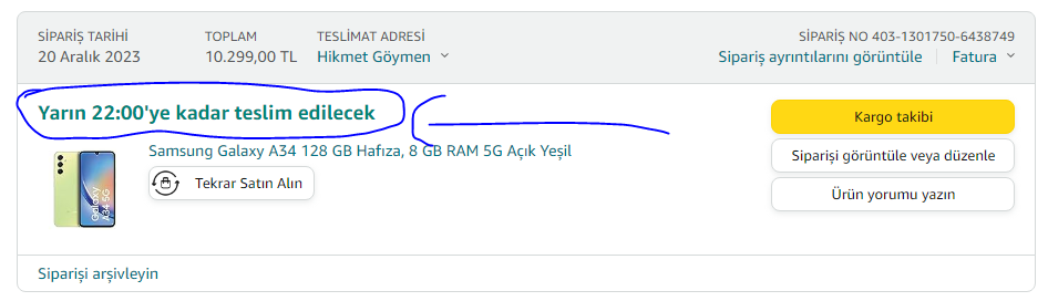 Az önce Amazon Prime kullanarak bu siparişi verdim fotoğrafta işaretli yer için o saatte evime mi gelecek o saatte kargoya mı verilecek bilen var mı?