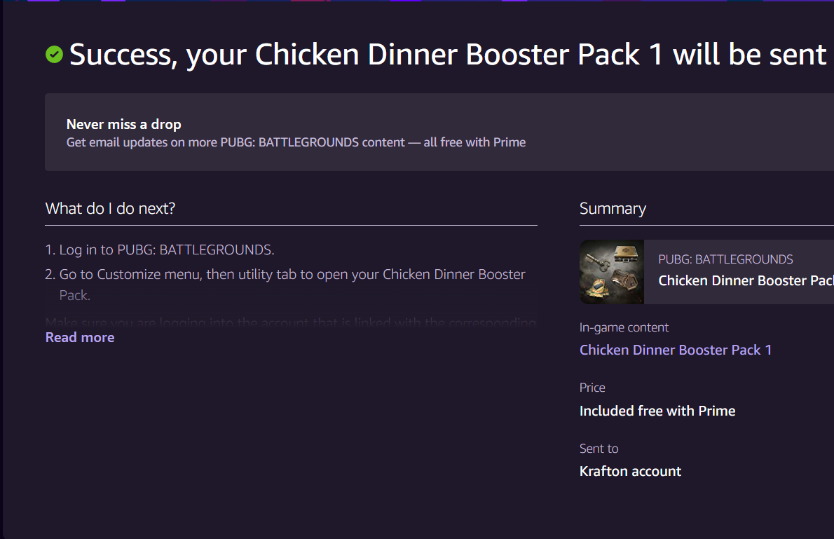 Amazon hesabım Steam ile linkli değildi. PUBG ödülünü al dediğim zaman hesabını linkle vs. yazıyordu, ben de sonra bağlarım diye diğer seçeneği seçtim ama Krafton hesabına gönderildi yazıyor. Benim Krafton hesabım yok, dolayısıyla Amazon'a bağlı bir hesabım da yok. Nereye gitti ödül, geri alabilme şansım var mı?