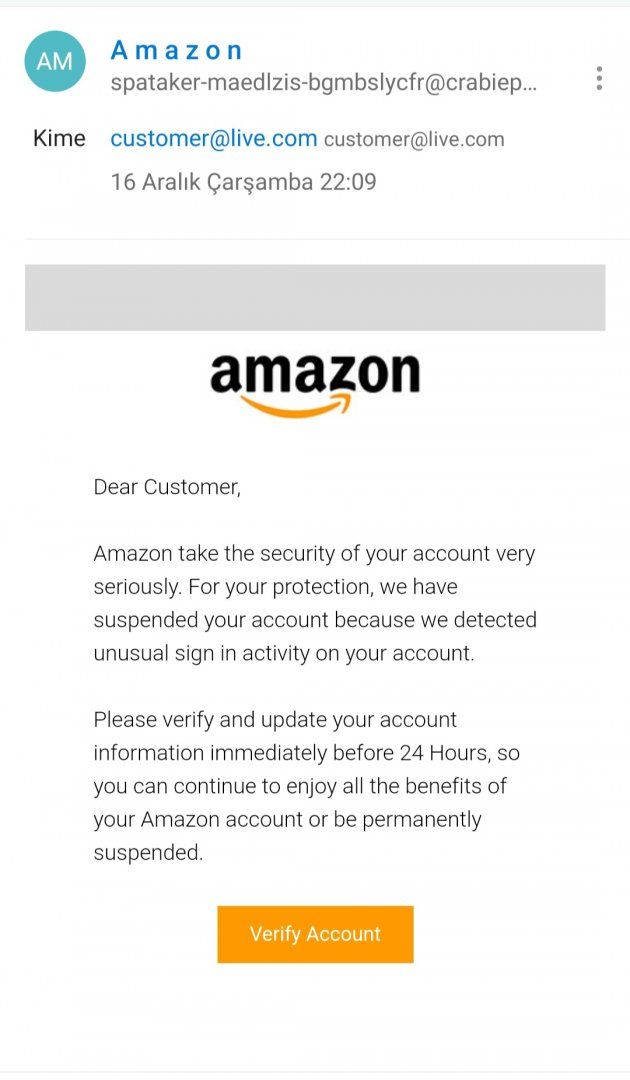 Amazon sahte e-postaya tıklamak