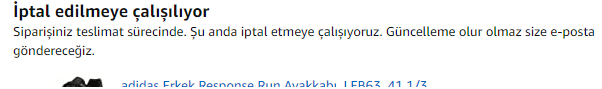 Arkadaşlar Amazon'dan siparişimi iptal etmeye çalıştığımda resimdeki sonuç çıkıyor. Sonrasında onaylanmıyor nasıl iptal edebilirim?