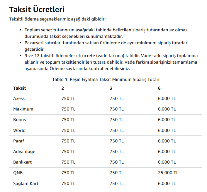 Arkadaşlar merhaba. Amazon.com.tr'den bir okuma kitabı alacağım ancak kredi kartı bilgilerimi girmeme rağmen sadece satın al butonu var ve satın alınca toptan çekiyor. Normalde ürünün olduğu sayfada 12 taksit seçeneği var ve benim Maximum kartım da buna dahil. Hatta başka bir elektronik üründe denedim, anlamadığım şekilde orada da çıkmıyor. Masaüstü web sayfasında yine çıkmıyor. Mobilden denedim, nafile.