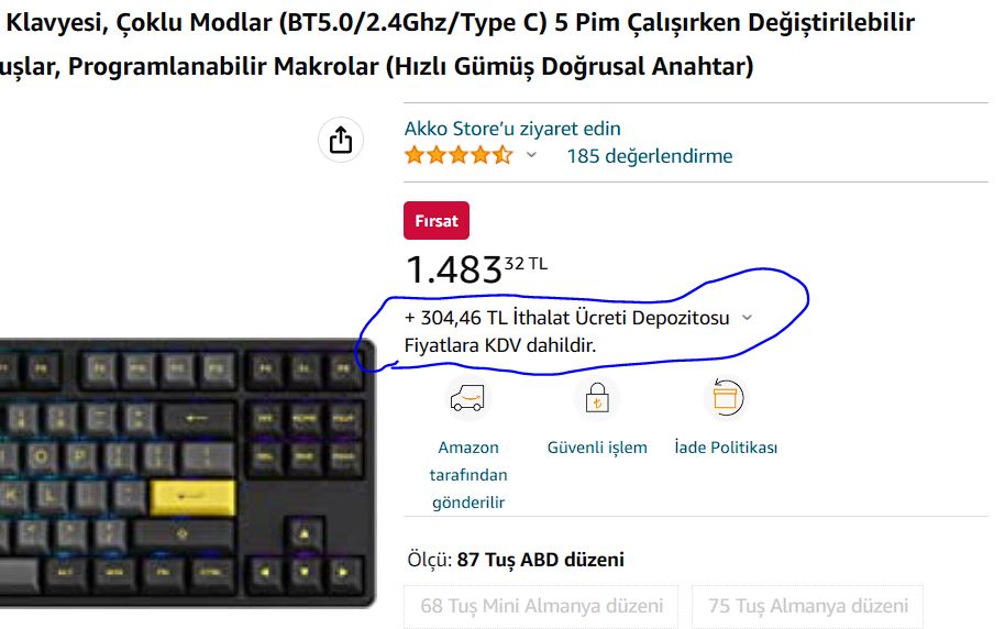 Merhaba, bu klavyeyi aldım ve resimlerde görüldüğü gibi sizce vergisi var mı? Yurt dışından geliyor.