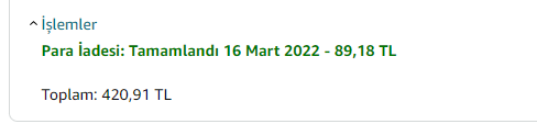 Amazon'dan 4 adet kasa fanı sipariş ettim, bu fanlar Almanya'dan yola çıktı fakat ürünlerin gönderilemeyeceği ve askıya alındığına dair bir mail aldım. İade işlemini başlattım fakat 420 TL olan ödememi 89 TL olarak iade ettiler. İadeden önce ekteki gibi bir mail aldım 4 adet fan olan siparişimin iadesini 1 fan ücreti kadarını iade ettiler. Amazon Türkiye maillere bakmıyor 4-5 gündür mailime cevap yok. Amazon'un canlı desteği ile İngilizce olarak iletişime geçiyorum adam bana siparişin Amazon Fransa üzerinden gözüküyor o yüzden ben bir işlem yapamam diyor. Hatta diyor ki Fransa canlı desteğine yaz ülkeni sorarlarsa Fransa'dayım de diyor. Benim anlamadığım ürünümü Fransa ile alakası da yok. Ürünler Hollanda'dan Almanya'ya oradan da Türkiye'ye kargolanacaktı. Koskoca Amazon'un girdiği şekillere bakar mısınız? Şu an ne yapmalıyım? Fikirlerinizi bekliyorum.
