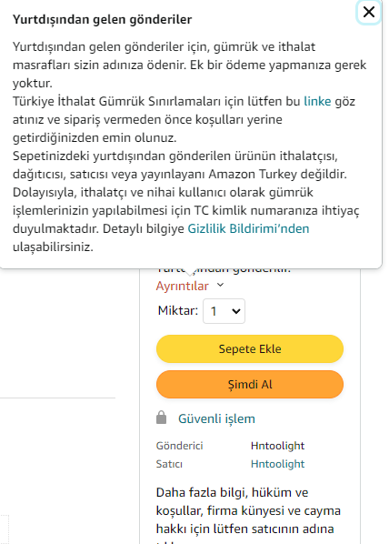 Baktığım bir mouse pad ile ilgişi nereden gönderildiğini sormuştum Çin'den geliyor gönderim ücreti yok size geldiği zaman vergisini ödeyeceksiniz daha sonra biz size o tutarı üründen keserek iade edeceğiz gibi bir şey söylemişti Amazon temsilcisi garip bulsam da sizinle de paylaşayım. Ürün de ekte isterseniz bir siz de sorun konuştuğum görevli belki yanıltıcı bilgi verdi.