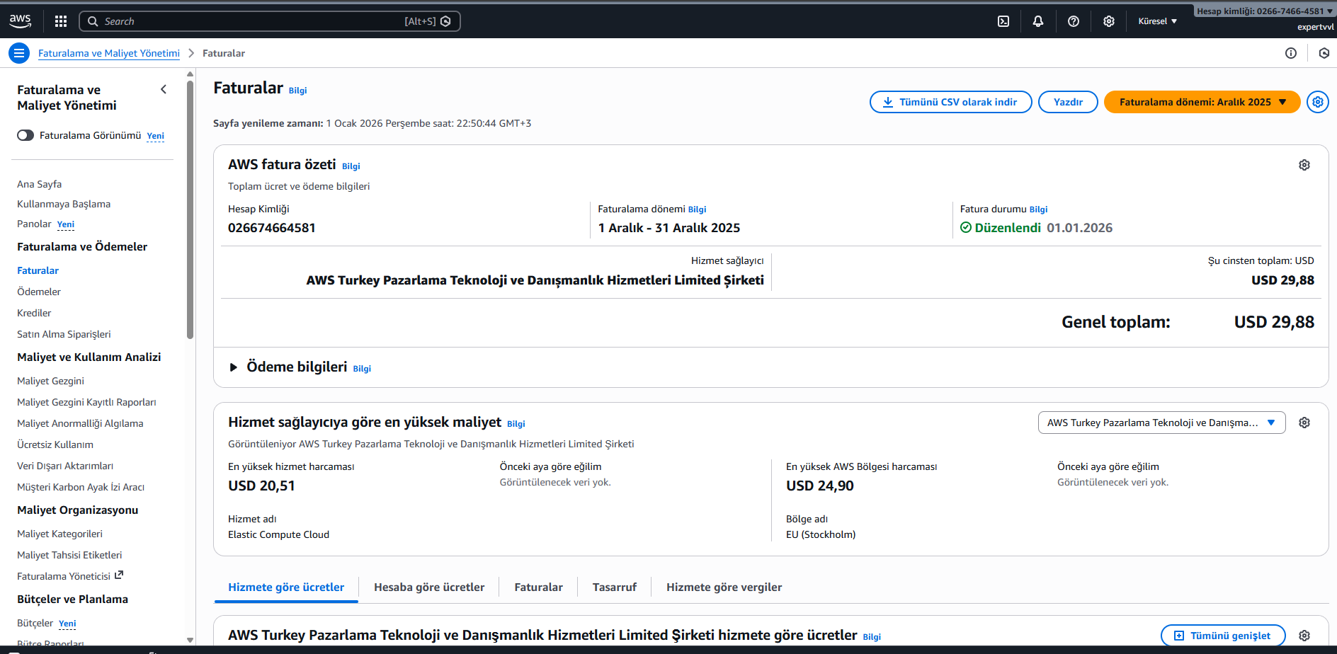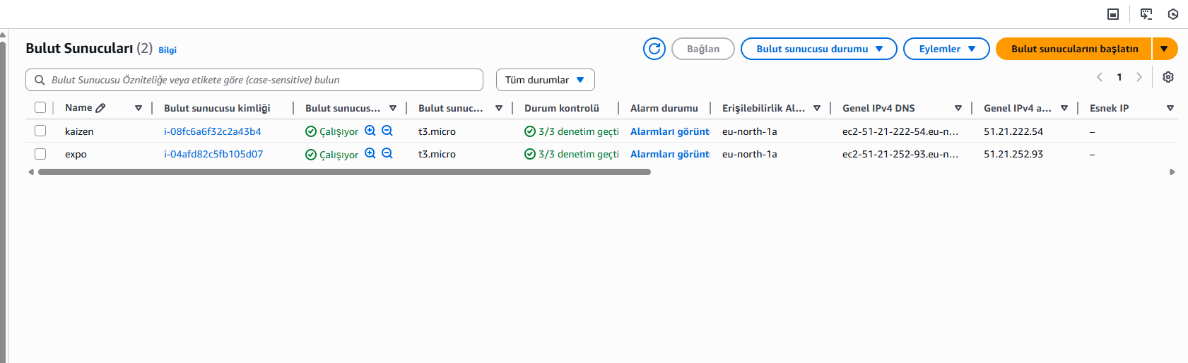 EC2 sayfasını hızlıca yeniden kontrol edin isterseniz, açık kalmış/faturaya yazan bir şey kalmasın.