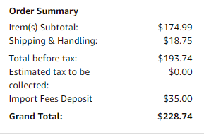 Kendim Amazon'un sattığı bir anakartı almıştım, görüntüde olduğu şekilde vergi ve kargoyu ayırıyor.