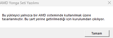 AMD chipset driver kurmaya çalışıyordum ve 'bu yükleyici yalnızca bir AMD sisteminde kullanılmak üzere tasarlanmıştır' hatası alıyorum. Bu yüzden Ryzen Master gibi yazılımları da kullanamıyorum. Yardımlarınızı rica edeceğim.