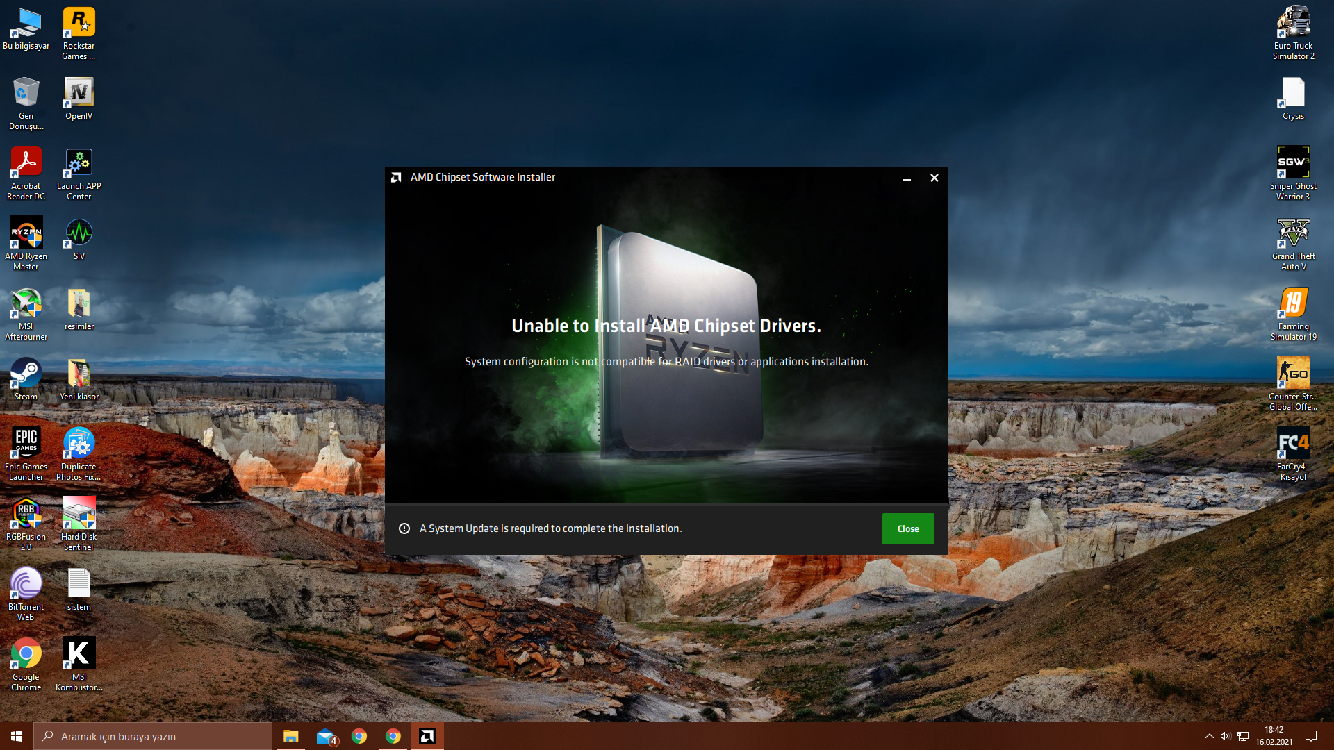 Çipsetimi güncellemek istedim. AMD'nin sitesinden en güncel sürümü indirdim ve kurmak istediğimde aşağıdaki fotoğraftaki problem çıkıyor, sorun nedir acaba?