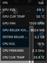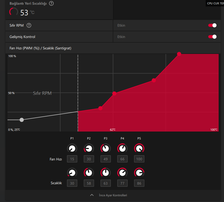 Fanlar hala 50 dere gibi bir şey iken çalışıyor. Benim oynadığım oyunda sürekli 49-55 dereceleri arası gezdiği için fan çalışıp duruyor çalışıp duruyor. Böylede fanın bozulacağından korkuyorum. Yukarıda 58 derecede çalışması gerektiğini ayarlamama rağmen fanlar 50 derecede çalışıyor:
