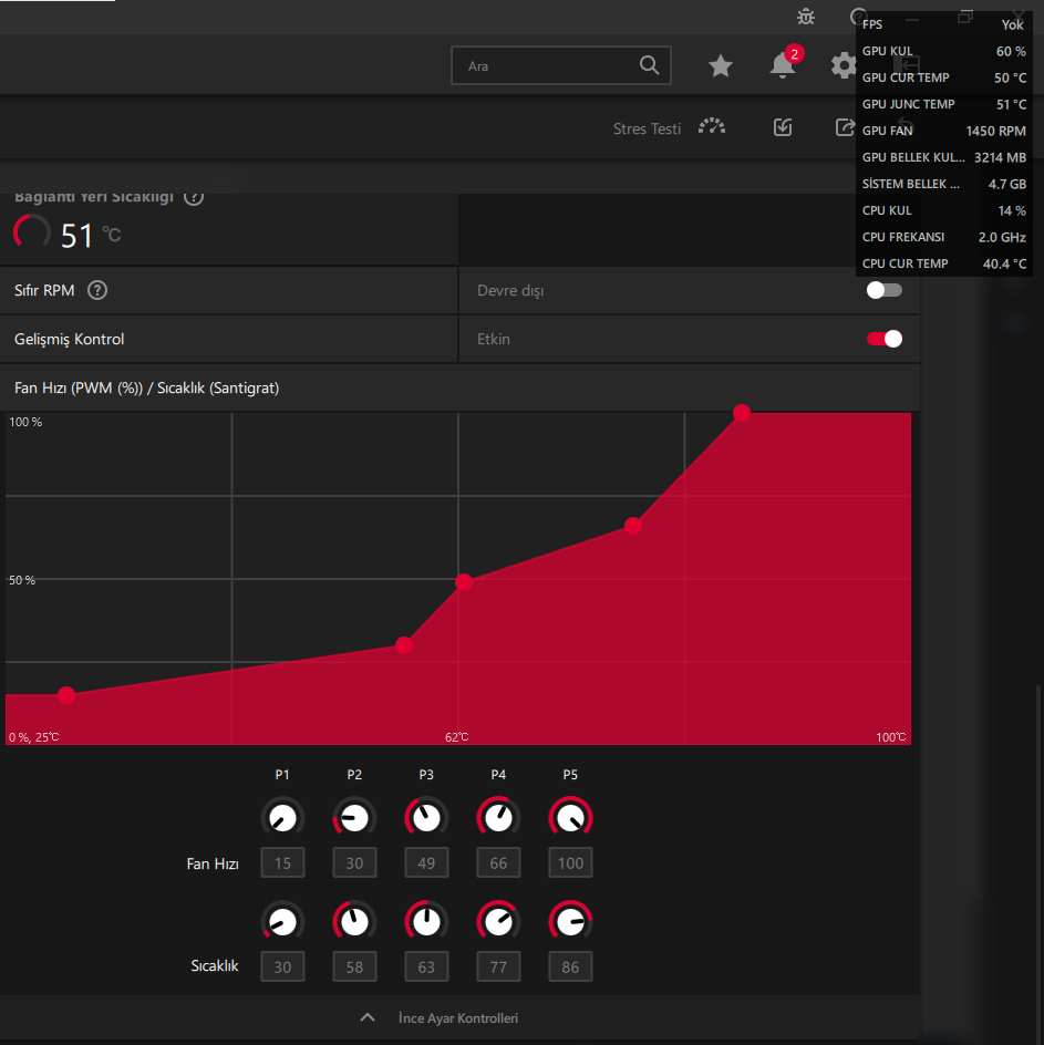 AMD uygulamasının üzerinde fan ayarı yapmama rağmen...