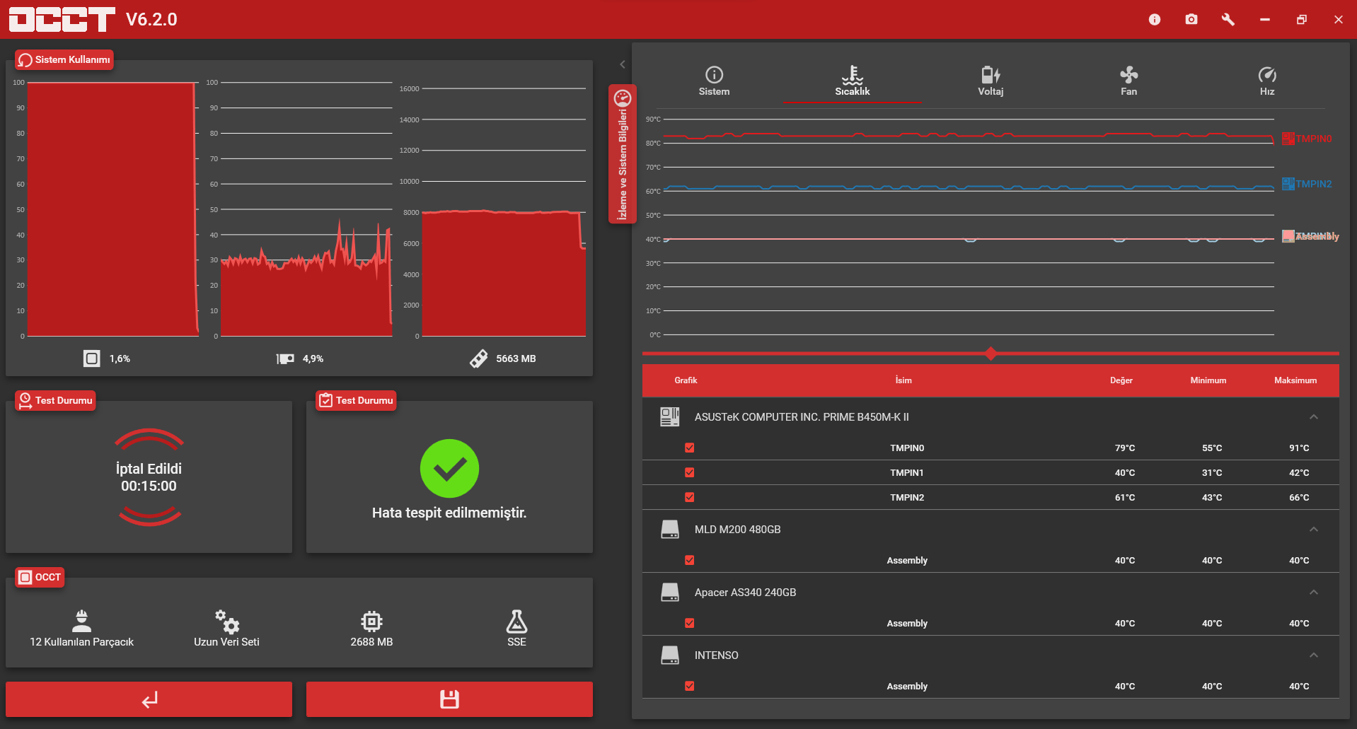 Prime95'te de "Blend" seçip test yapabilirsin. OCCT ile ekran kartına da test yapabilirsin ayrıca.