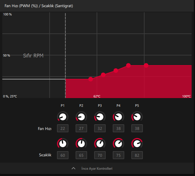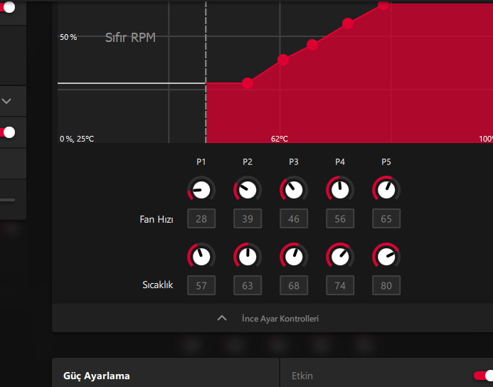 AMD yazılımdan fan ayarlaması yaptım karta ancak çok yanlış çalışıyor. Örnek: