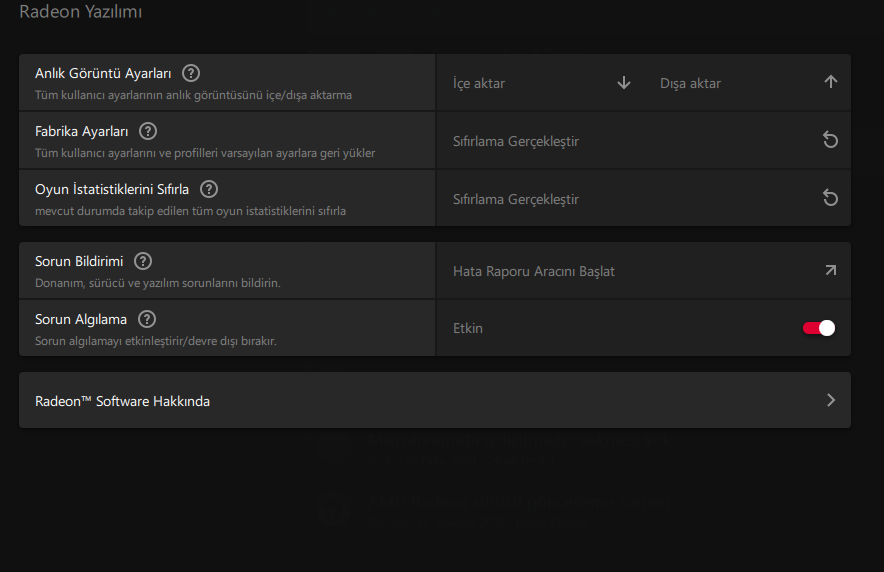 Ayarlar /sistem sekmesinde ''AMD softvare Adrenalin Sürümü Versiyonu'' yazısı çıkmıyor mu?