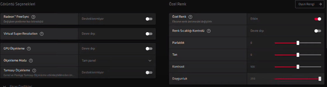 Peki bazı ayarların bende olmaması normal mi? Yazılımda güncel AMD Radeon HD 8730M ekran kartım.