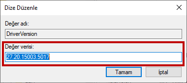 Driverversion'a tıkladıktan sonra karşınıza çıkan pencerede değer verisi kısmına ilk başta kopyaladığınız sürücü sürümünü yapıştırın.