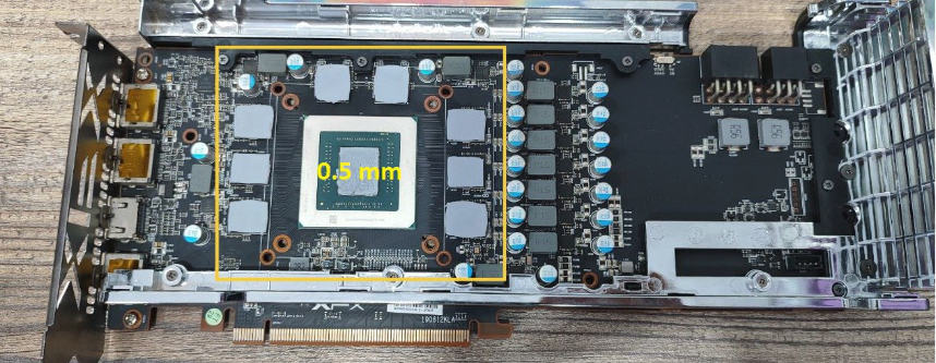 Sapphire Pulse için, bellek yongaları için (ilk resim) tümü 1 mm'dir. Arka plaka için, çip üzerinde gözükenler 2 mm, uzun olarak görülen ise 3mm (ikinci resim).