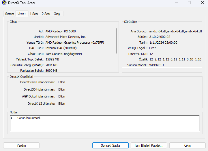 Ekran kartım normalde 8 GB VRAM'e sahip ama burada 7801MB görünüyor nedenini anlayamadım.