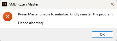 Merhaba, AMD Ryzen Master uygulamasını kurdum ancak programı açmaya çalıştığım zaman başlıkta belirttiğim "kindly reinstall the program" hatası alıyorum.