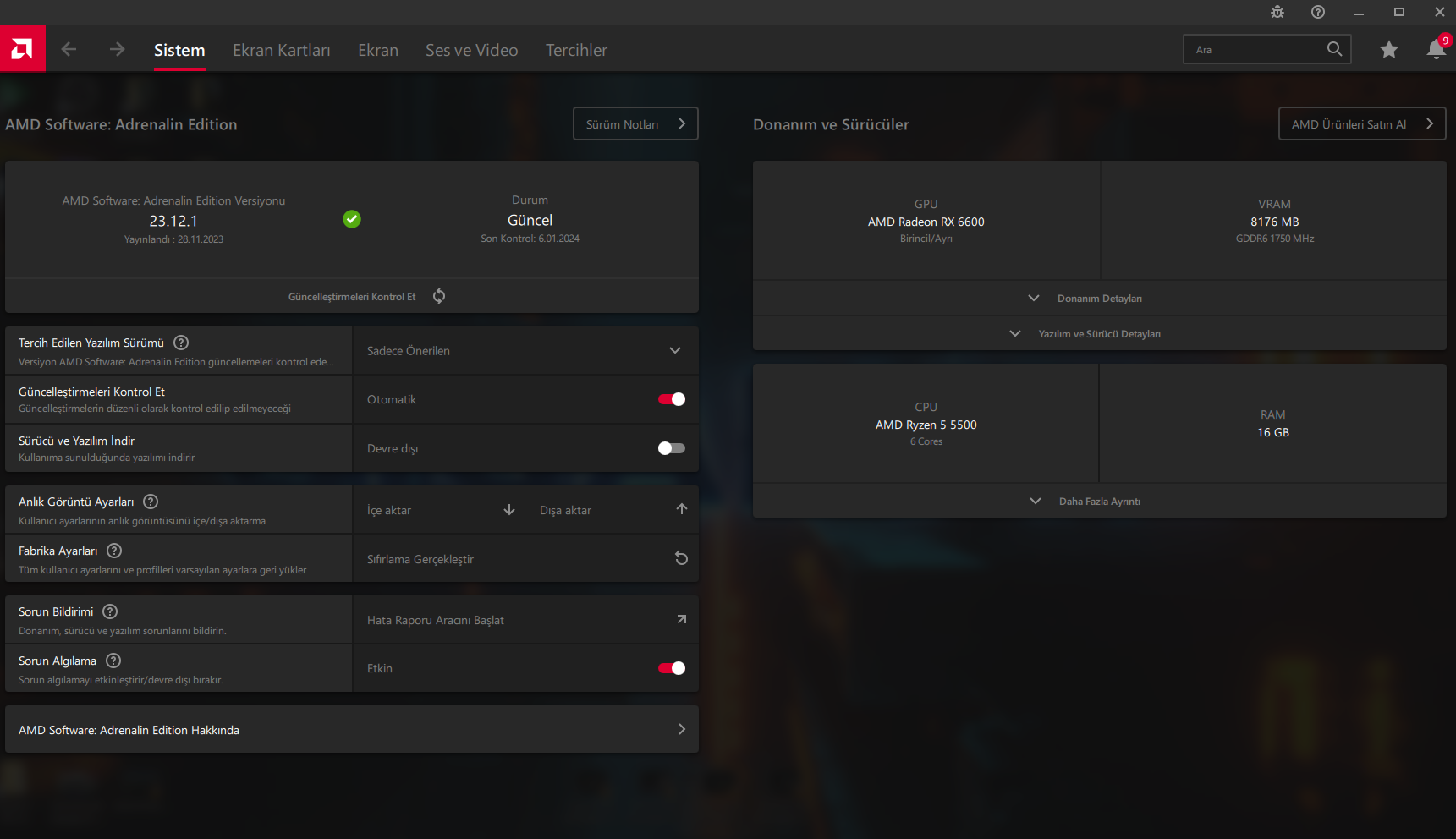 Adrenalin 23.12.1 sürümünü kullanıyorum ancak birçok farklı sürümü zaten denedim. SAM ve XMP kapatıp açmayı denedim. Ayrıca diğer driverlarım da güncel.