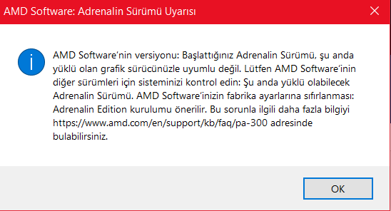 Çözüldü AMD Software "Adrenalin Sürümü Uyarısı"