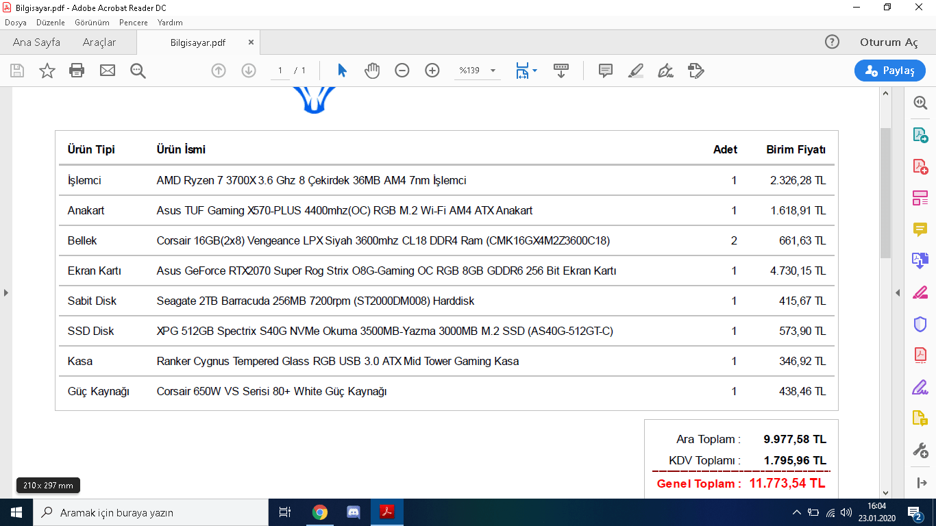 Sistemin güzel belki kasa değiştirilse iyi olabilir. Monitör 2K bütçeniz yeterse tavsiye ederim. Benim nacizane tavsiyem: QP RED - GeForce RTX 2070 Super / R7 3700X / 16 GB / 480 GB SSD Oyun Bilgisayarı bu sistemdir. QP Red Technopat ekibi tarafından toplanıp testlere tabii tutulmuş bir sistem olup tamamen baş ağrıtmayacak parçalar ihtiva ediyor ki QP'nin hizmet kalitesini bilen biliyor. Şiddetle tavsiye ederim bir değerlendir. 11.349 TL şuandaki fiyatı ve sen istediğin gibi parçalarda değişiklik yapabilirsin.Eki Görüntüle 490724