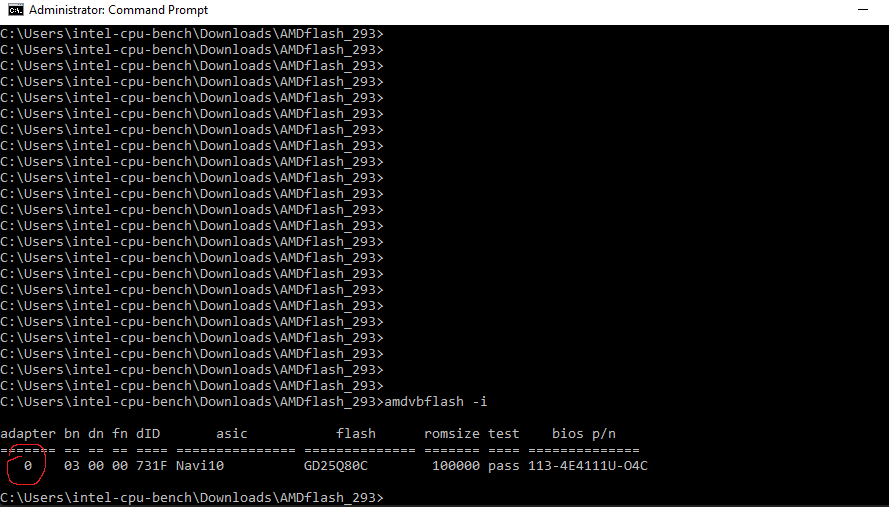 Sonrasında amdvbflash -i komutu ile adapter numaranızı öğrenin.