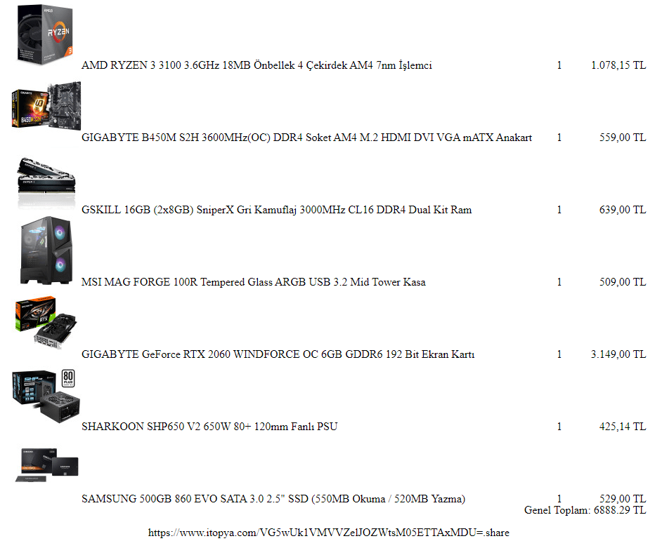 Merhaba. Battle Elite [webtekno] | i5-9400F RTX 2060 6G 16GB DDR4 480GB SSD Gaming PC - incehesap.com