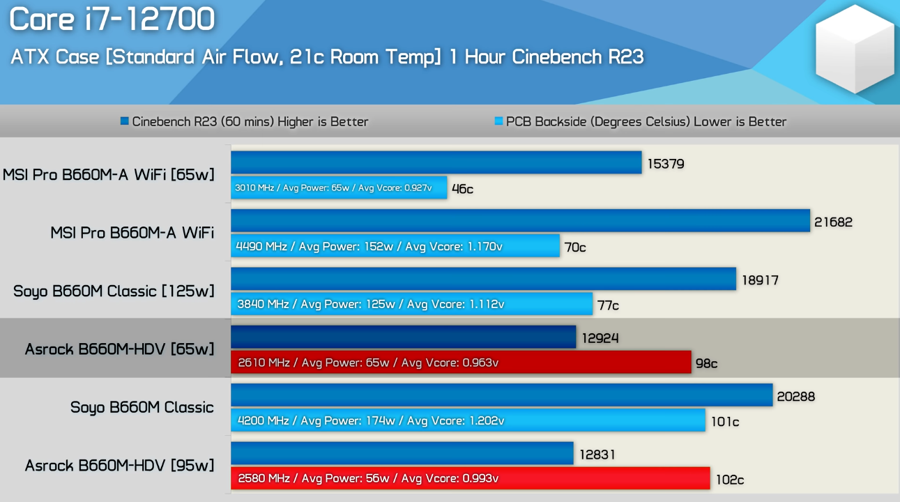 Anakart, işlemciyi soğutmaz. Anakart, işlemciye gitmesi gereken gücü vermeye çalışır. Bu gücü verirken de VRM'ler ısınır. Eğer bu VRM'leri soğutabilecek soğutmaya sahip olmayan bir anakart kullanırsan VRM'ler ısıdan dolayı zarar görmemek için gücünü kısar ve işlemci performansın düşer. "Thermal Throttling" diye geçer.