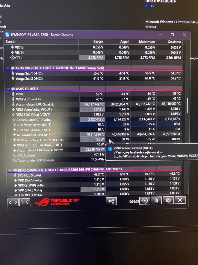Gayet iyi değerler. Tabi CPU'nun çektiği Watt değerine göre değişir. Genede 100C dereceden bile fazlasında çalışabileceğini söyleyeyim.Evet arkadaşlar sorum bu. Sizce anakartımın VRM ve anakart sıcaklığı normal mi? 30dakikalık TLOU 1 sonrası değerler bu. (odada 24 derece klima çalışıyor iken bu dereceler).