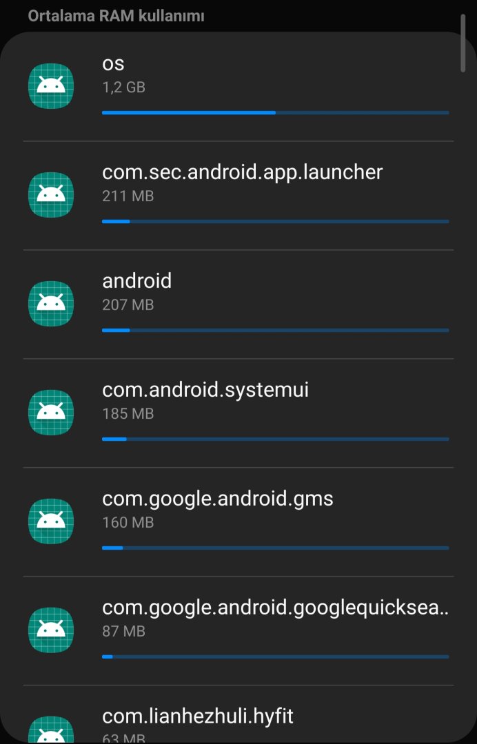 İşletim sistemi Android'in kendisi kullanıyor RAM'i.
