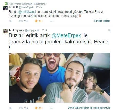 2014 yılında iki isim de aynı günde tweet atarak barıştıklarını bildiriyorlar.
