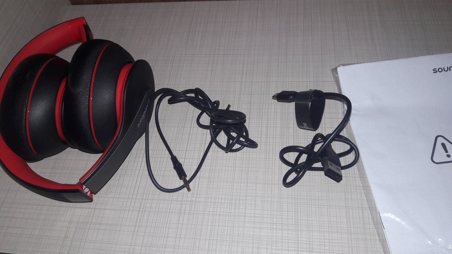 Kutunun içinden kulaklığın kendisi, AUX kablosu, type-c şarj kablosu, garanti belgesi ve kullanım kılavuzu çıkıyor