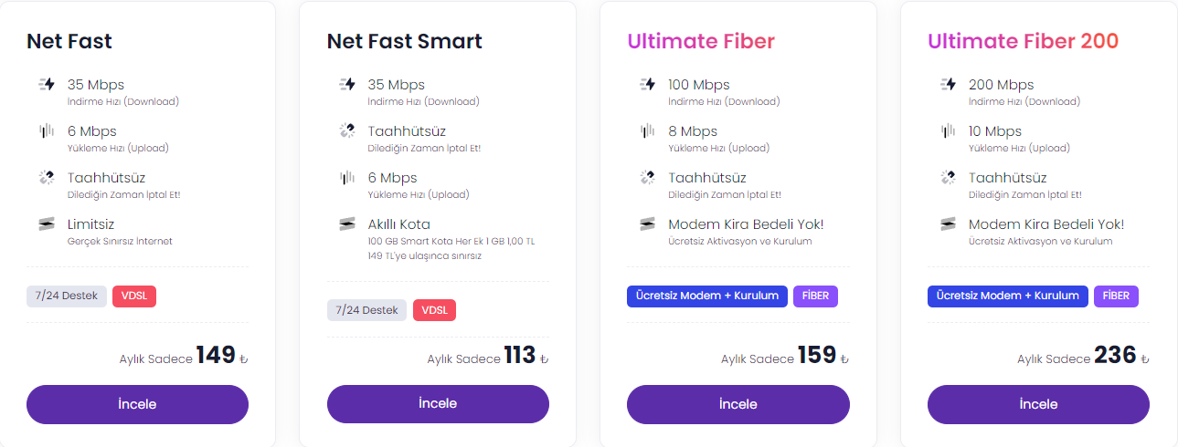 Netspeed'in güncel fiyatı VDSL 35Mbps 149TL olduğunu söyleyebilirim.