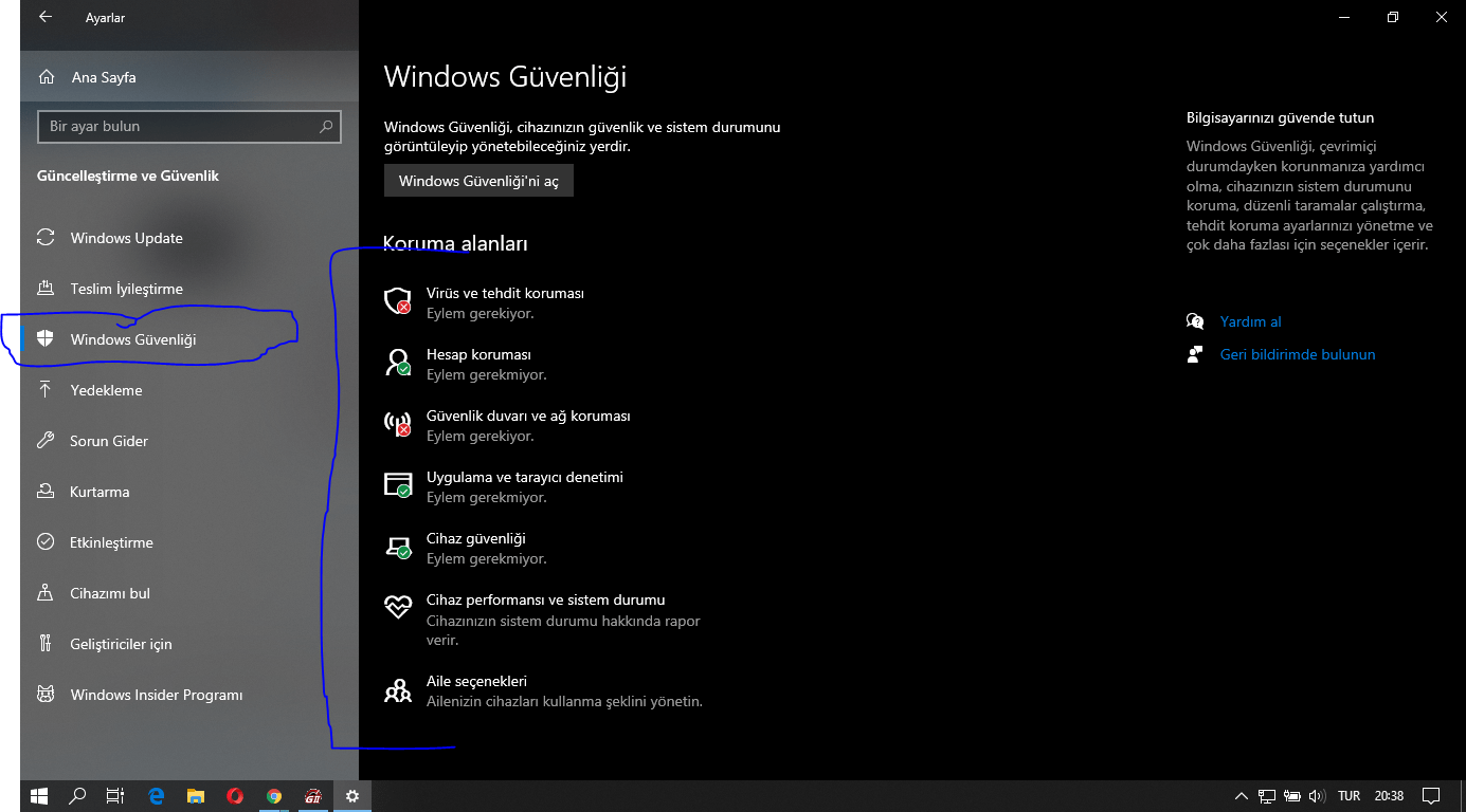Başlat > ayarlar > güncelleştirme ve gizlilik > Windows güvenliği > ayarlar > bildirimleri yönet.