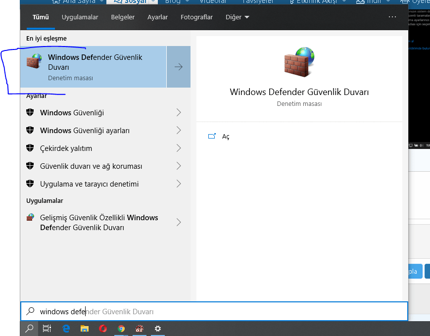 Windows güvenlik duvarına dair her şeyi kapatma: