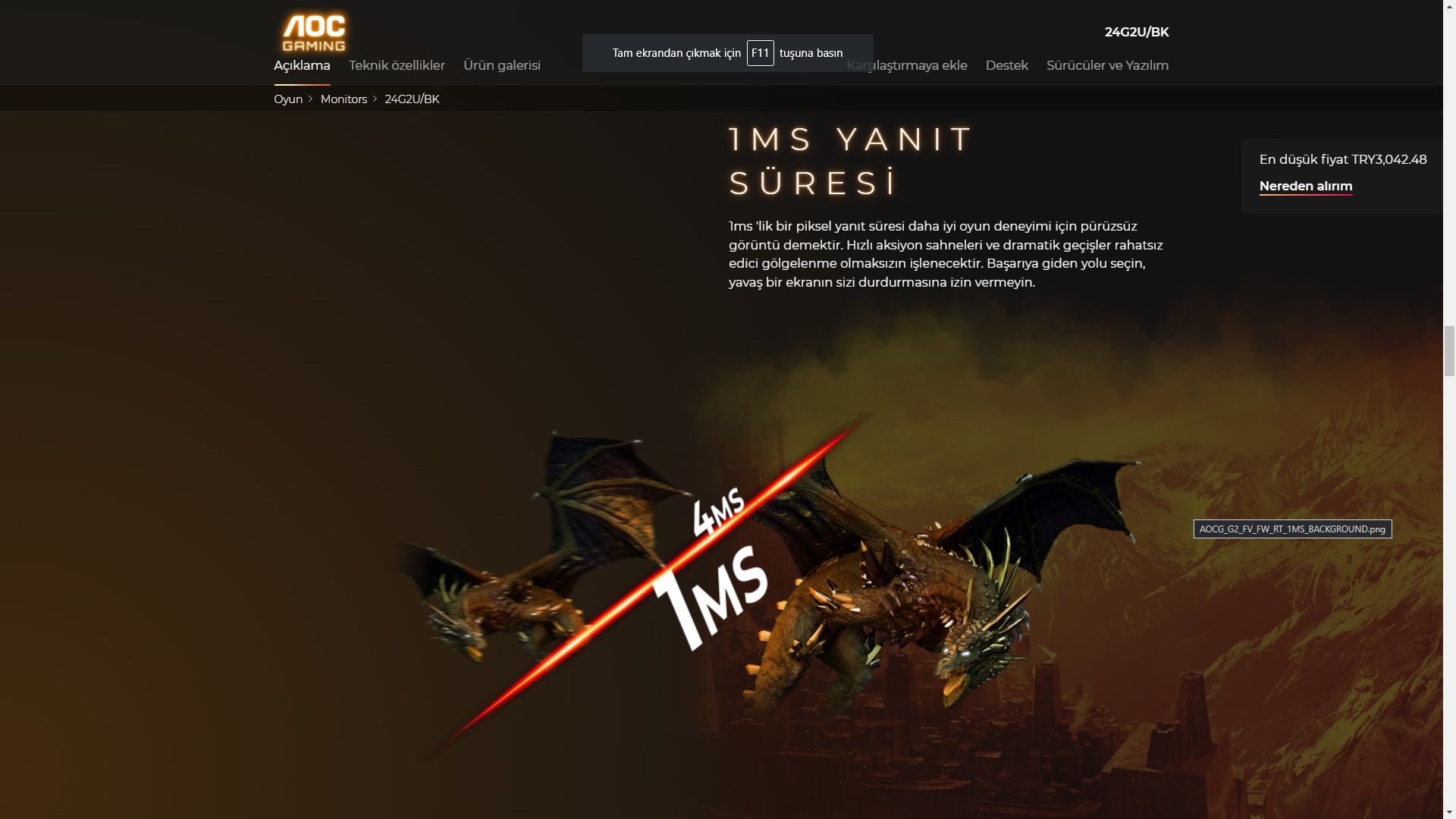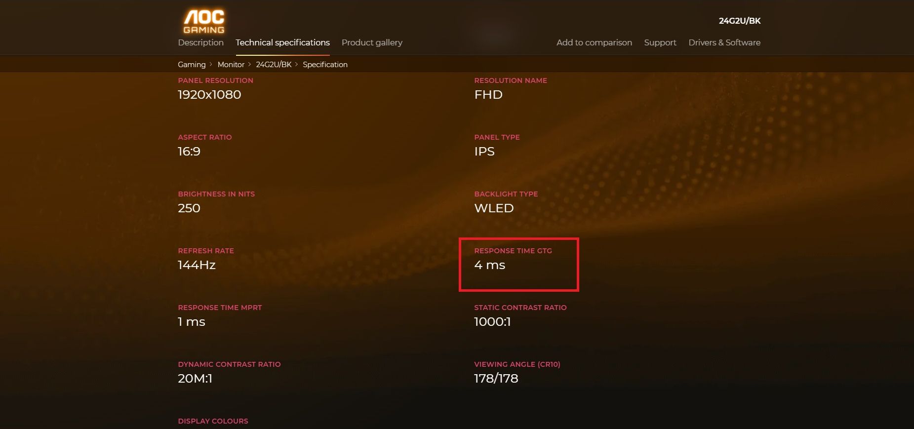 Kendi sitesinde ürünün özellikler kısmında bu bilgi mevcut. İşin komik tarafı 1 VS 4 ms arasında ki farkı gösteriyorFiyasko bir aldatmaca yapıyor AOC, ve kullanıcıların çoğu da bu basit ayrıntının farkında bile değil.